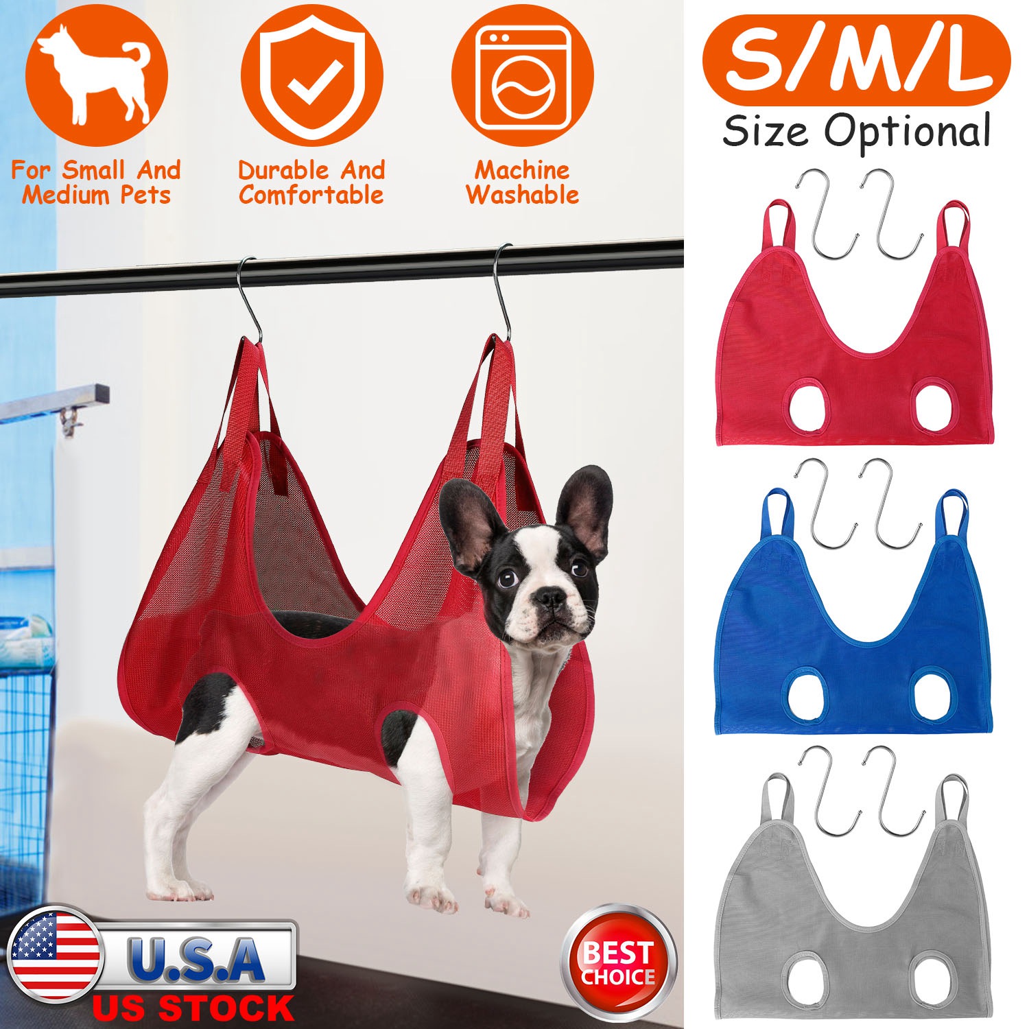 Grooming a wiggly puppy can be a challenge. Our grooming hammock provides a perfect solution by putting the uncooperative pet in the air. It will calm down immediately, which allows you to work on its legs, tail, and those hard-to-reach spots safely. Made of durable and soft Dacron, it’s suitable for small to medium pets(S/M/L for choice).