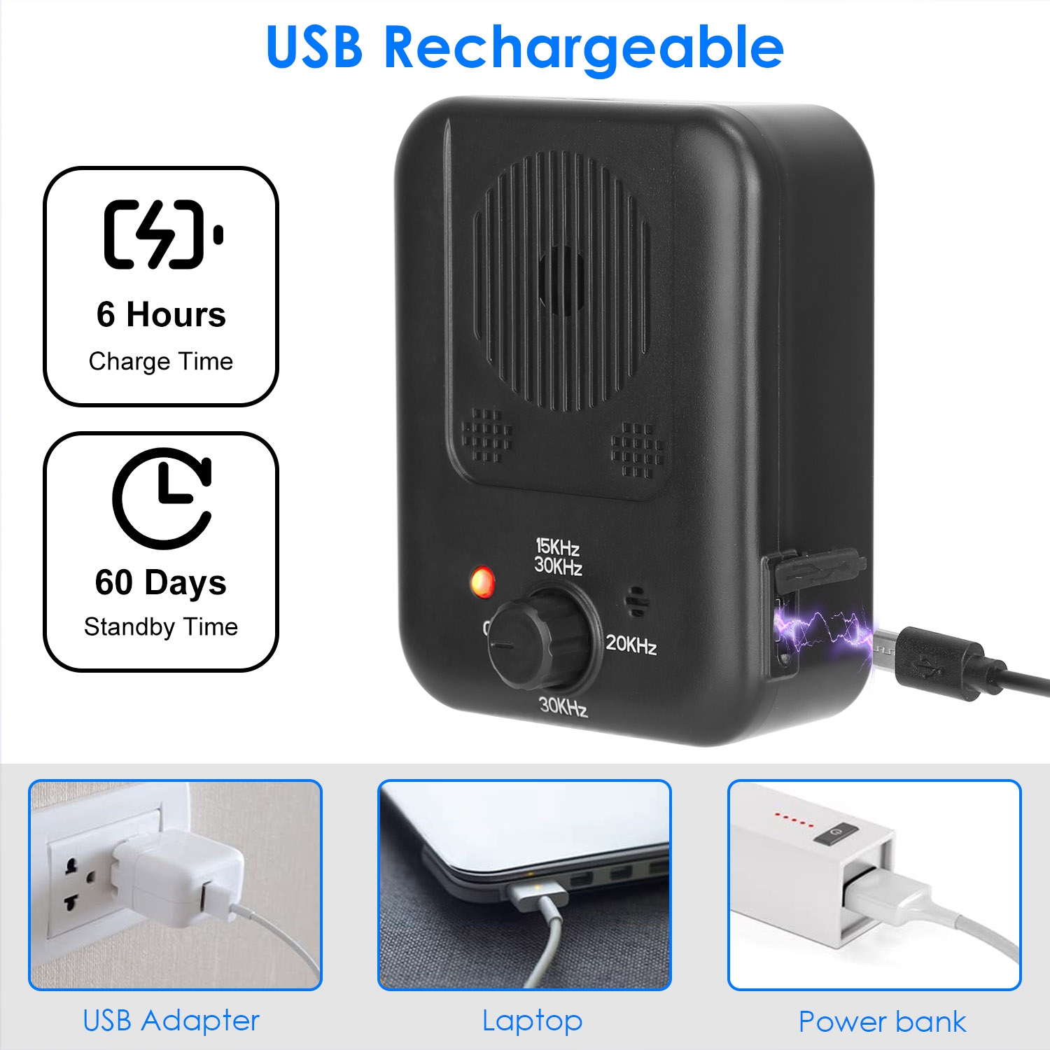 Does your dog keep barking when see someone visiting which annoys you so much? Take this ultrasonic anti-barking device home and train your dog instantly! This dog bark control deice features 3 adjustable ultrasonic frequency levels, which emit sounds that dogs can hear but will not hurt them, efficiently stopping your dog’s barking. Equipped with long-lasting battery, this sonic bark deterrent can keep standby 60 days after fully charged about 6 hours. Suitable for dogs from 6 months old to 8 years old. The device can be mounted at garden fence, home, dog house, tree etc..